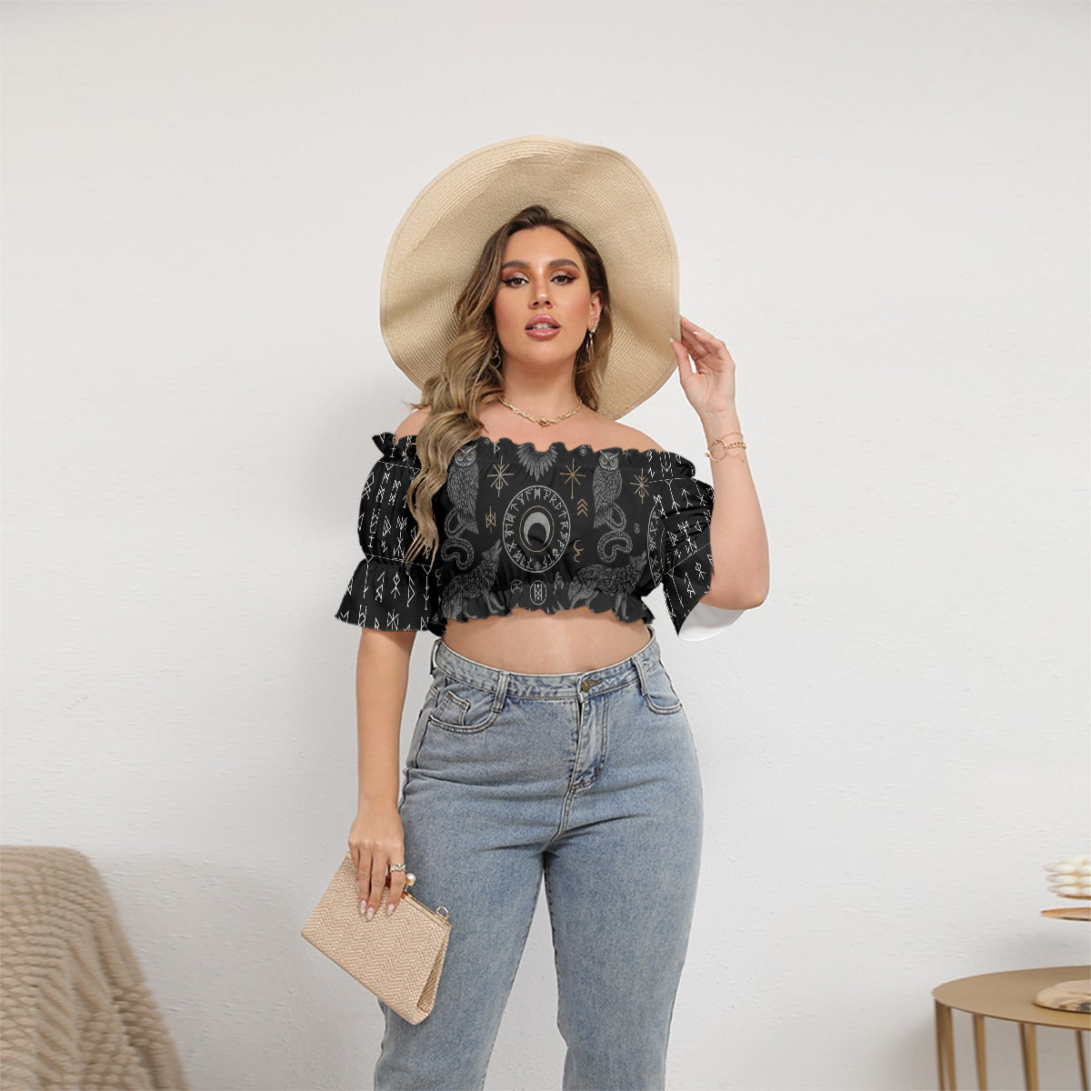 - Īss uzpūsts piedurkne, atklāts plecs, ar sasiešanu