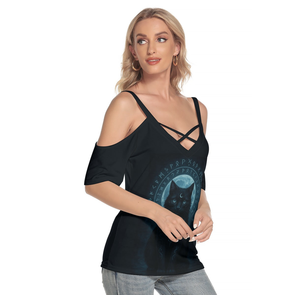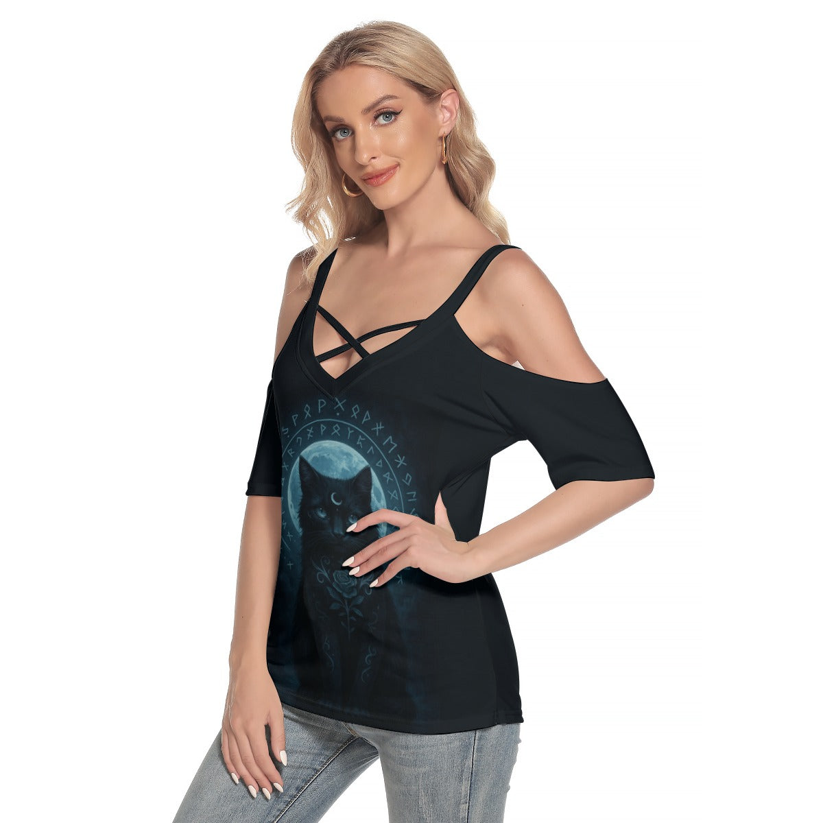 - Detalizācija: aukstais plecs, īss piedurknes, plānas siksnas uz pleciem, krustotas siksnas uz krūtīm