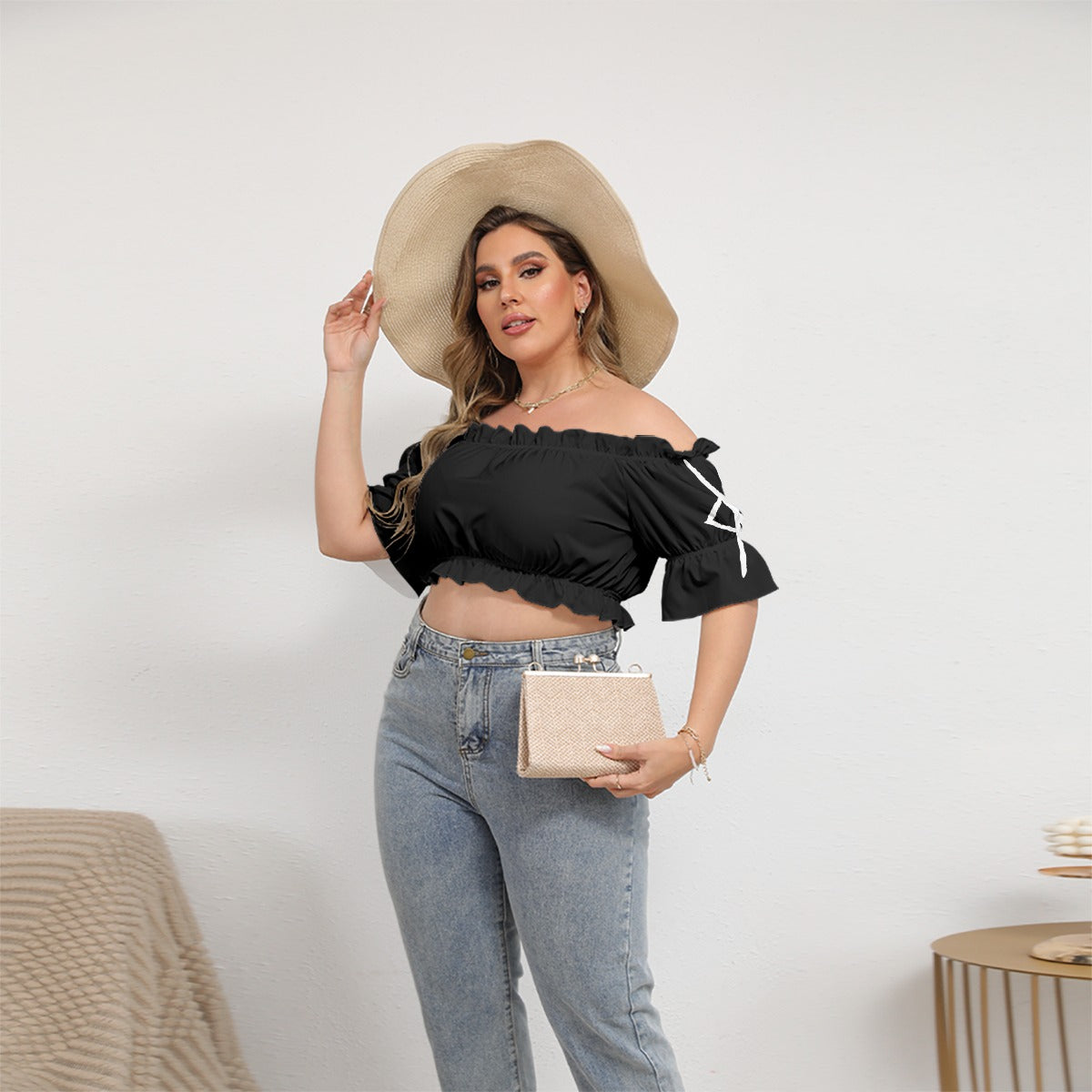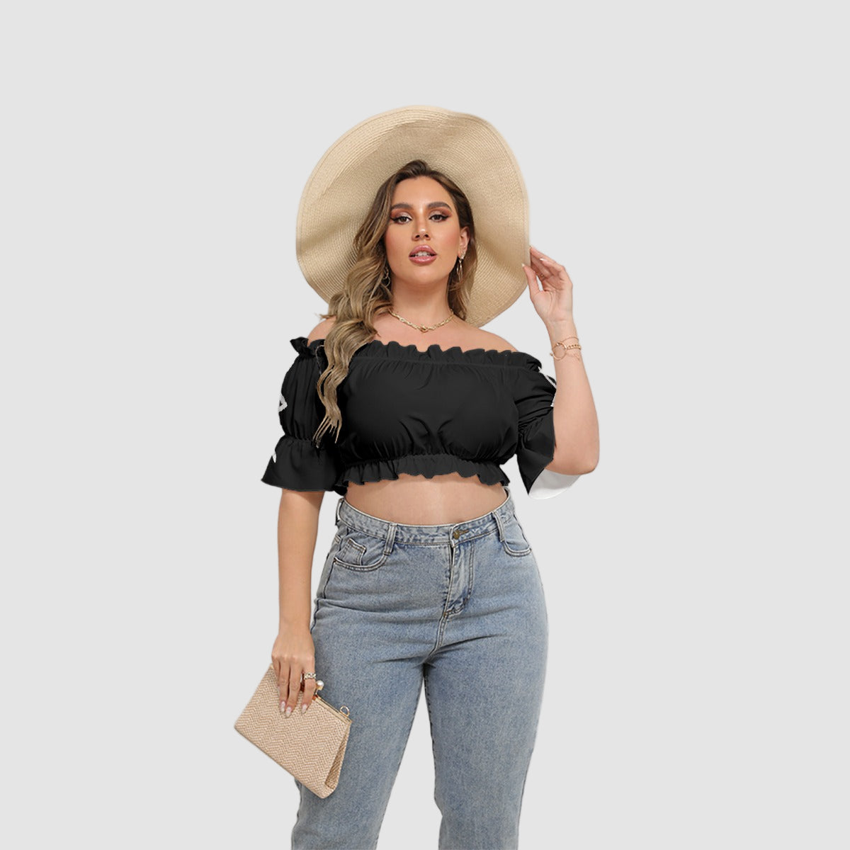 - Īsas puff piedurknes, atklāj plecus, ar sasiešanu