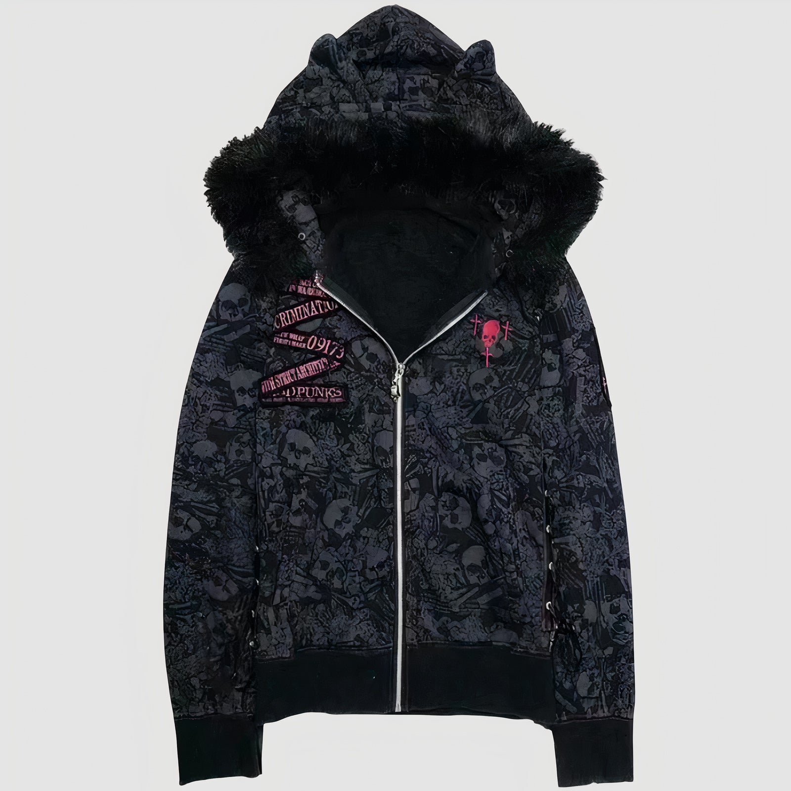 - Apdare: izšuvumi, galvaskausu motīvi, kontrastējoši ielaidumi, kabatas