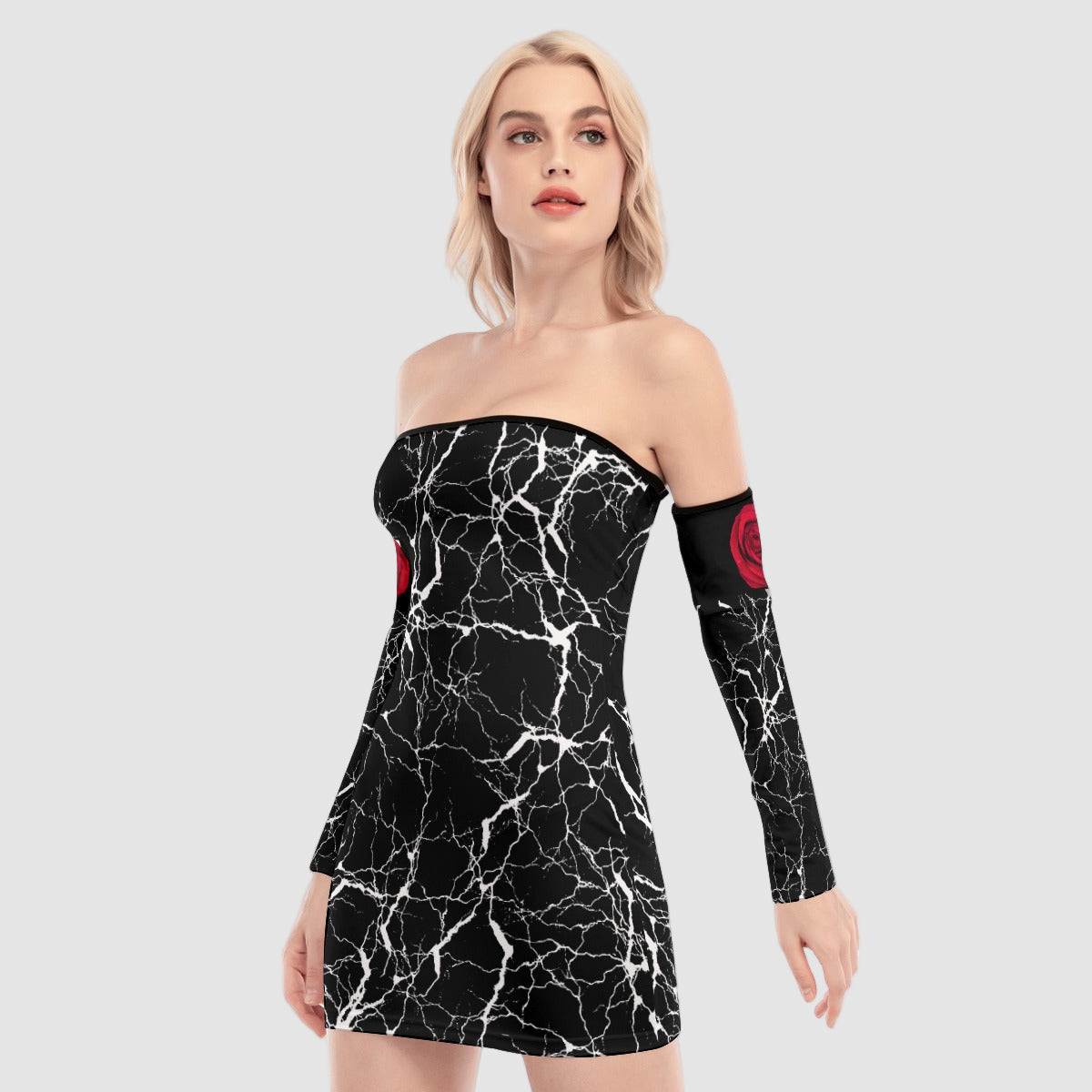 - Stils: atklāti pleci, sasienams aizmugurē, garas piedurknes, tube tops